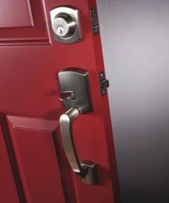 Schlage® Greenwich Satin Nickel Entry Door Lever Handleset And Single Cylinder Door Deadbolt