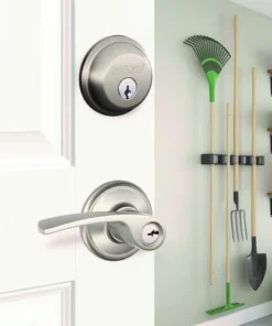 Schlage® Merano Satin Nickel Door Lever With Century Trim And Touch™ Keyless Entry Door Deadbolt