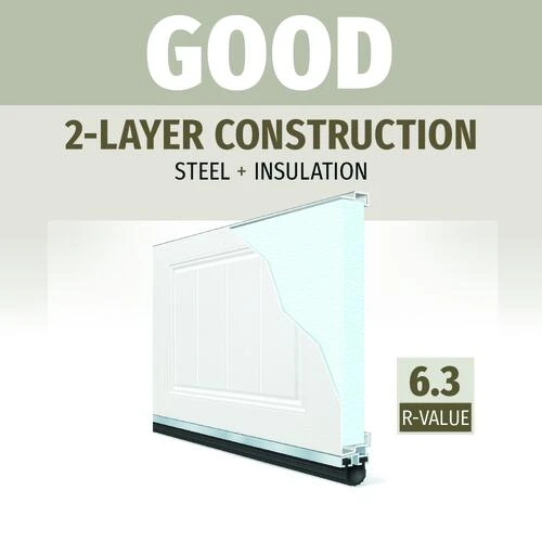 - 2-Layer construction (Steel + insulation) with vinyl backed insulation
