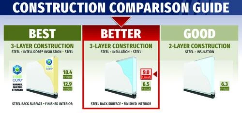 - 3-Layer construction (Steel + insulation + Steel) with Finished Interior Steel Back Surface