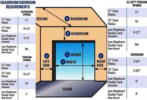 - EZ-SET® or standard torsion springs require 9-1/2″ of headroom