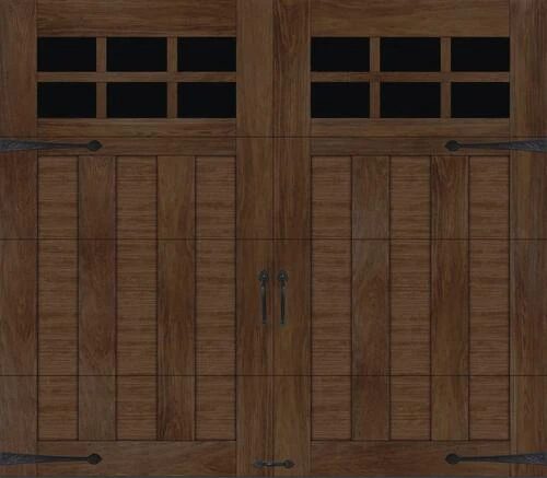 - Walnut Insulated Garage Door with Windows with 2″ Intellicore® Insulation, R-Value 18.4 – Warmer. Quieter. Stronger.