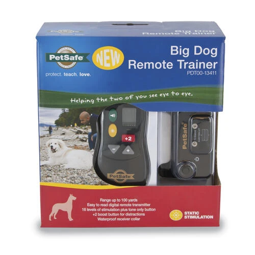The PetSafe® Big Dog Remote Training Dog Collar is an easy and safe way to train your dog off-leash. You can use the remote trainer to teach your dog new commands and stop bad behavior. Simply press a button and your dog will receive a harmless but annoying static correction that gets your dog’s attention. With 16 levels to choose from, you can be sure to find just the right level for your dog.
