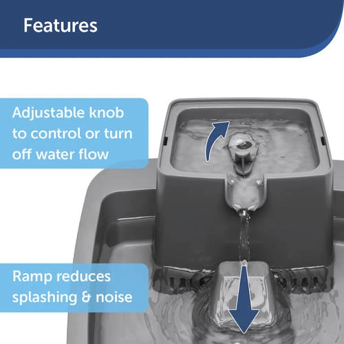 - Customize Water Flow ? Adjustable water flow allows you to customize the stream for you and your pet, or turn it off for a more quiet operation