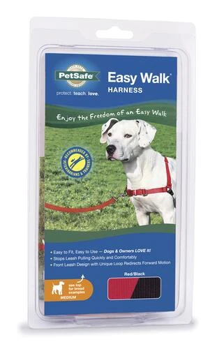Loved and trusted by a million dog parents and trainers each year, the PetSafe® Easy Walk® No Pull Harness is the perfect walking companion for you and your pup! The patented Martingale loop and front chest leash attachment minimizes your dog?s pulling by gently steering him in the direction you are headed. To stop gagging or choking, this harness is designed to rest across your dog?s chest instead of his throat. This harness is perfect for light to moderate pullers and comes in a variety of colors and designs so your pup can take walks in style. Finding a perfect fit takes only minutes, so this harness is ready for action whenever you are! Trust PetSafe® to help keep your pet healthy, safe and happy.
