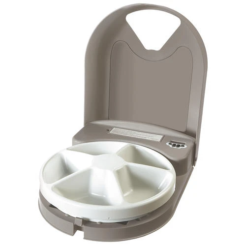 Now you can delver your pet’s meals even when life keeps you busy. The 5-Meal Automatic Feeder includes five one-cup portion sections and is programmable to serve your pet’s meal exactly when he needs it. Simply fill the five sections and set the timer. The tray will rotate at the scheduled mealtime so you don’t have to worry about your pet missing meals or snacks.