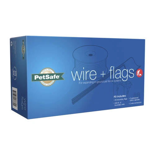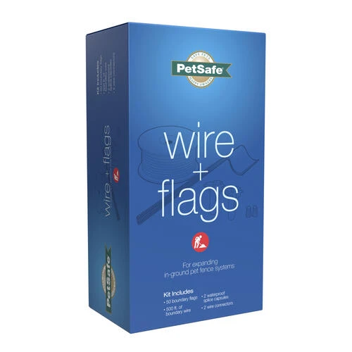 Expand your in-ground pet fence system by 1/3 acre with the PetSafe® Wire and Flag Kit. It includes 500 feet of solid 20-gauge copper wire with 50 training flags to help your dog understand his or her new boundary. A splice kit is also included for aboveground and belowground connections or repairing broken wire. Trust PetSafe® to help keep your pet healthy, safe, and happy.