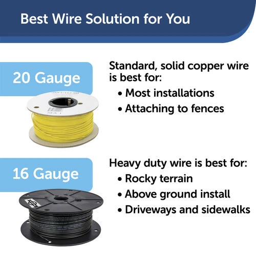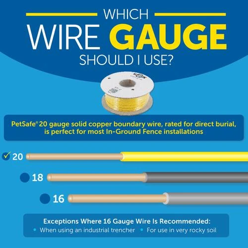 Create a custom boundary with your PetSafe® Pawz Away® Outdoor Pet Barrier Boundary Wire or expand your in-ground fence boundary. Each spool of extra in-ground boundary wire comes with 150 feet (45 meters) of 20-gauge, solid core, copper wire rated for direct burial. The length of wire needed will vary due to amount of twisted wire and the layout you select. A waterproof connection is needed for proper performance when adding additional boundary wire. We recommend using our Splice Kits (RFA-366) which include wire nuts and gel-filled capsules. PetSafe® brand is here to help you and your pet live happy together™.