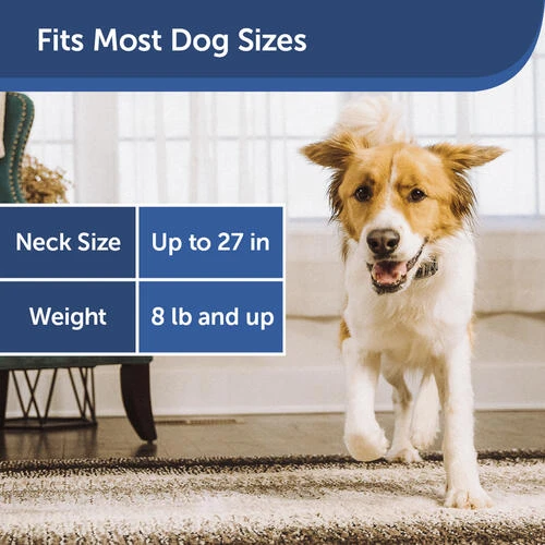 - Collar fits dogs 8 pounds and up, and pets with a neck size up to 27″